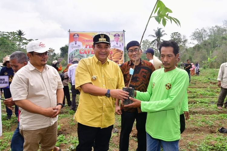 Penjabat Gubernur Sulsel Bahtiar Baharuddin saat bersama petani pisang di Bantaeng.