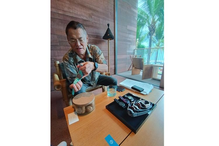 Figure 1Managing Executive Officer sekaligus Senior General Manager Casio Itoh Shigenori menjelaskan sejumlah seri jam tangan G-Shock edisi spesial ulang tahun.