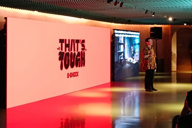 Kikuo Ibe mendemonstrasikan ketangguhan G-Shock pada perayaan ulang tahun G-Shock di Seminyak, Bali, Sabtu (2/12/2023).