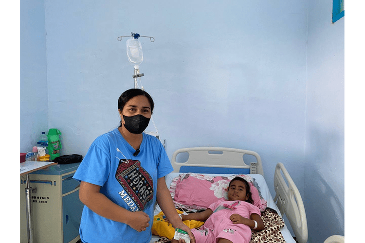 Virgorina Artiati Seubelan (35) saat putrinya Aurora Edelweis Simopiaref (5) menjalani perawatan di rumah sakit (Dok. BPJS Kesehatan)