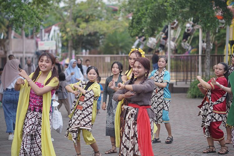 Pentas tari tradisional menjadi salah satu hiburan yang ditampilkan di Saloka Theme Park.