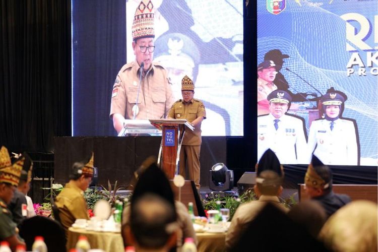 Gubernur Lampung Arinal Djunaidi menyampaikan catatan kinerja pemerintahannya pada acara Refleksi Akhir Tahun 2023 di Ballroom Hotel Novotel, Bandar Lampung, Senin (18/12/2023).