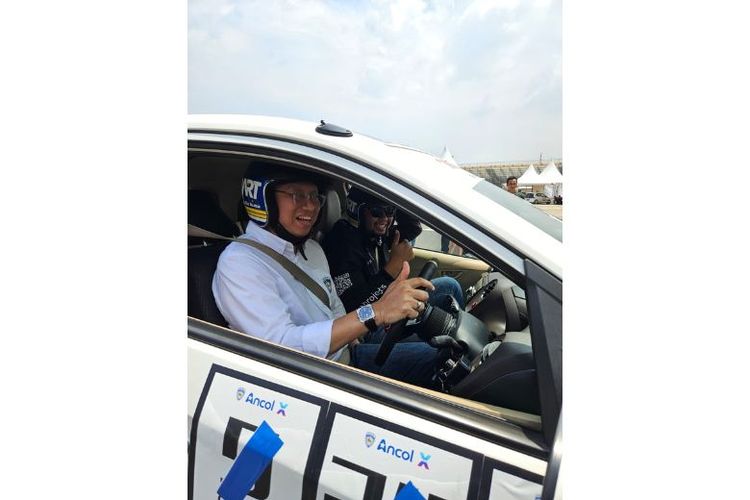 Ketua Umum IMI DKI Anondo Eko dan VP Strategic Partnership and Customer Engagement PT Pembangunan Jaya Ancol Tbk Aldhita Prayudiputra mencoba slalom.