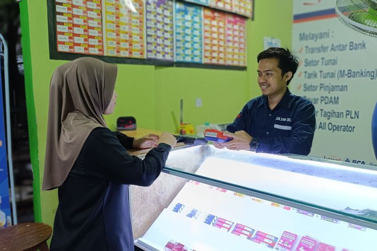 Counter pulsa sekaligus Agen BRI Link di Pasar Kramat Jati, Jakarta Timur.