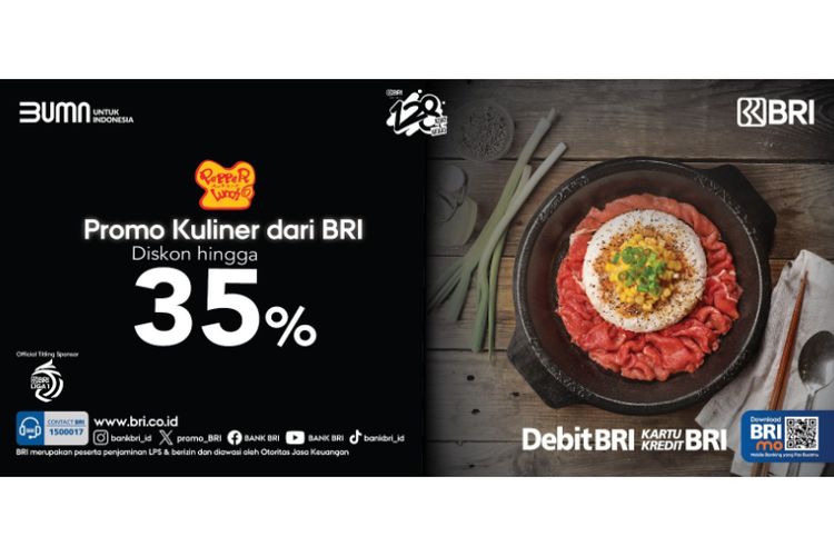 BRI berikan diskon Pepper Lunch 35 persen khusus pengguna Kartu Debit BRI Prioritas, Private & Bisnis Premium, dan Kartu Kredit BRI World Access dan Infinite.