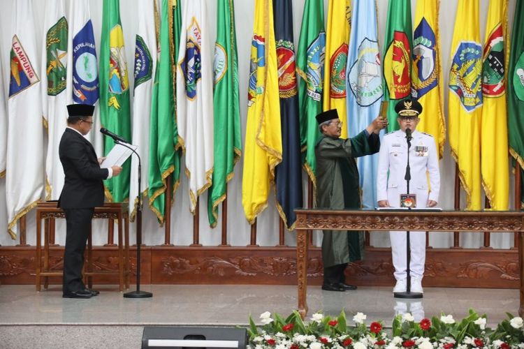 Menteri Dalam Negeri Muhammad Tito Karnavian melantik Sekretaris DaerahProvinsi Jawa Timur Adhy Karyono sebagai Penjabat (Pj) Gubernur Jawa Timur di Gedung Sasana Bhakti Praja (SBP), Kantor Pusat Kementerian Dalam Negeri (Kemendagri), Jakarta, Jumat (16/2/2024). (dok. Humas Kemendagri)