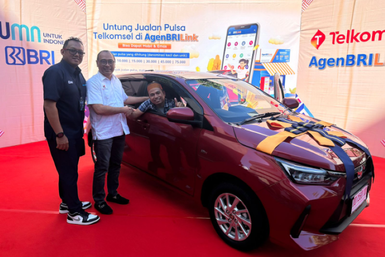 Penyerahan hadiah utama program Untung Jualan Pulsa Telkomsel di AgenBRILink periode 2023.
