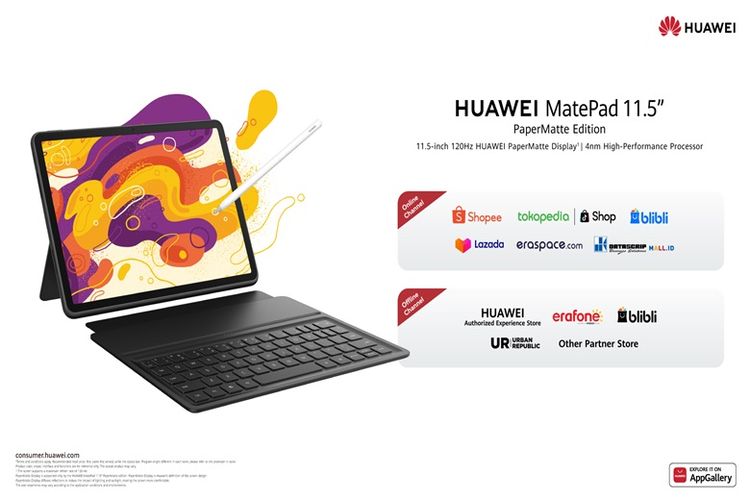 Huawei MatePad 11.5 Papermatte Edition dapat dibeli melalui Huawei Official Store di platform, seperti Shopee, Tokopedia, Blibli, Lazada, dan Eraspace.com.
