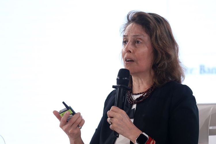 Research Affiliate at Harvard University Beatriz Armendariz saat berbicara dalam acara BRI Microfinance Outlook 2024 di Jakarta, Kamis (7/3/2024).