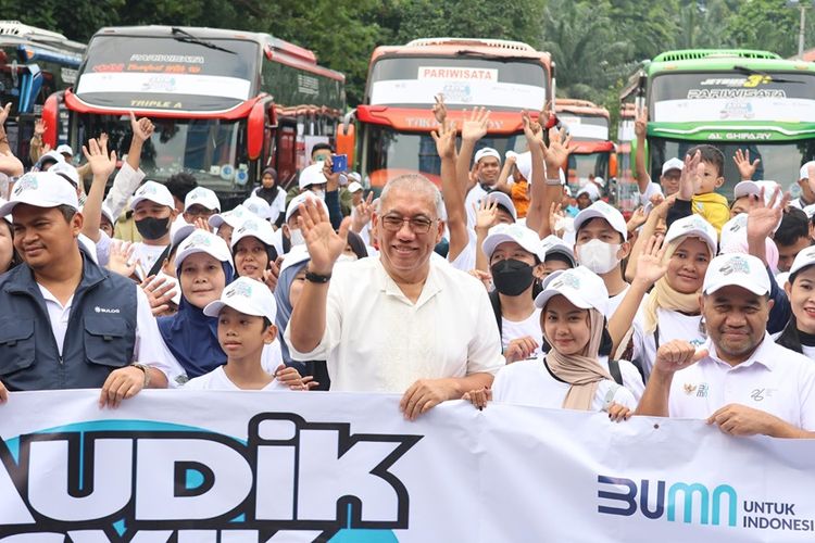 Bulog melepas 650 peserta mudik di Kantor Pusat Perum Bulog, Jumat (5/4/2024).