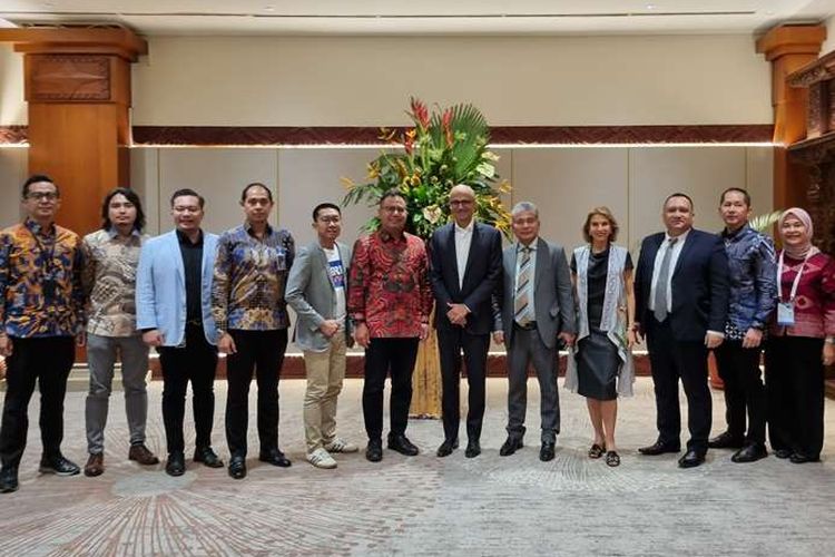 Dirut BRI Sunarso bersama jajaran BRI berfoto dengan CEO Microsoft Satya Nadella bersama jajarannya di Jakarta Convention Center, Jakarta, Selasa (30/4/2024). (DOK. BRI)