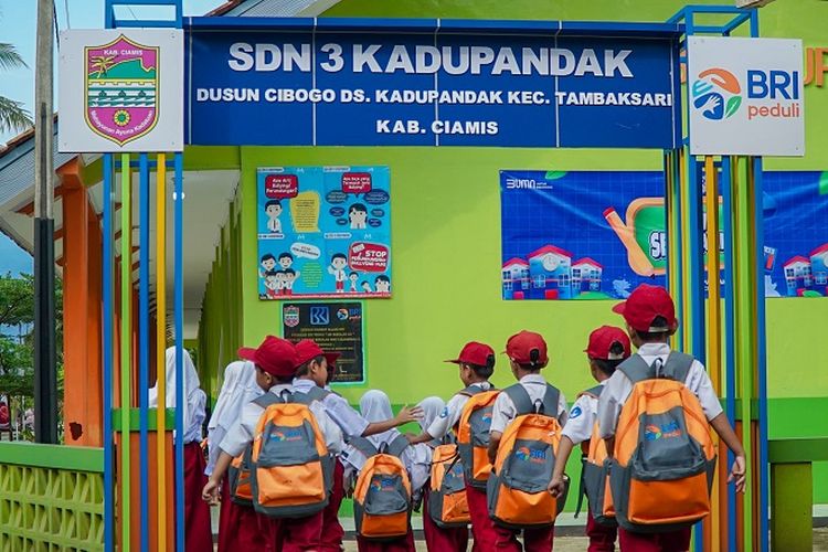 Bank Rakyat Indonesia (BRI) menggulirkan program BRI Peduli Ini Sekolahku untuk meningkatkan kualitas fasilitas pendidikan di Indonesia, salah satunya di SDN) 03 Kadupandak, di Dusun Cibogo, Desa Kadupandak, Kecamatan Tambaksari, Kabupaten Ciamis, Jawa Barat. (DOK. Humas BRI)
