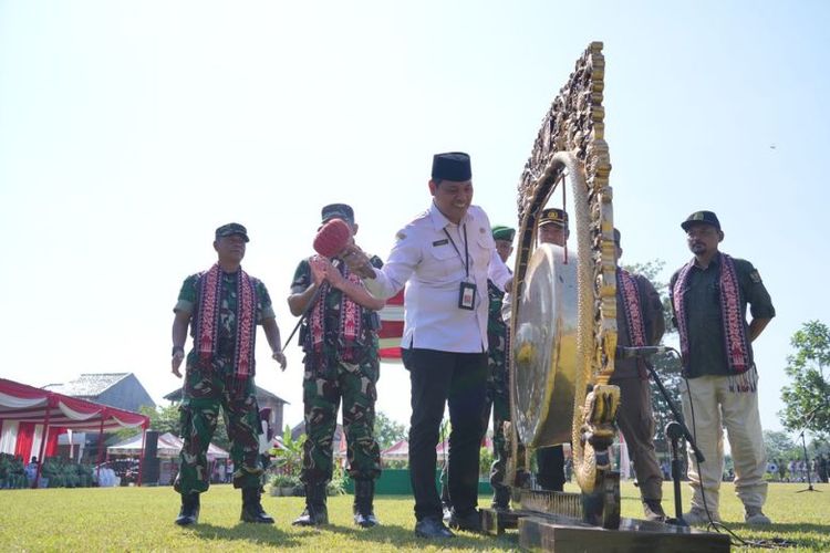 Sekda Klaten, Jajang Prihono, membuka TMMD Sengkuyung Tahap II 2024 dengan pukulan gong.