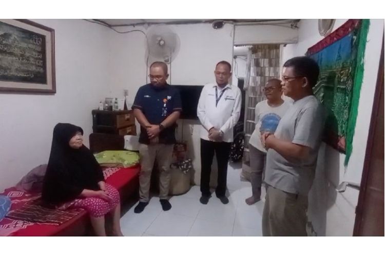 Direktur Bisnis Jasa Keuangan PosIND Haris saat ada di rumah penerima dana pensiun.