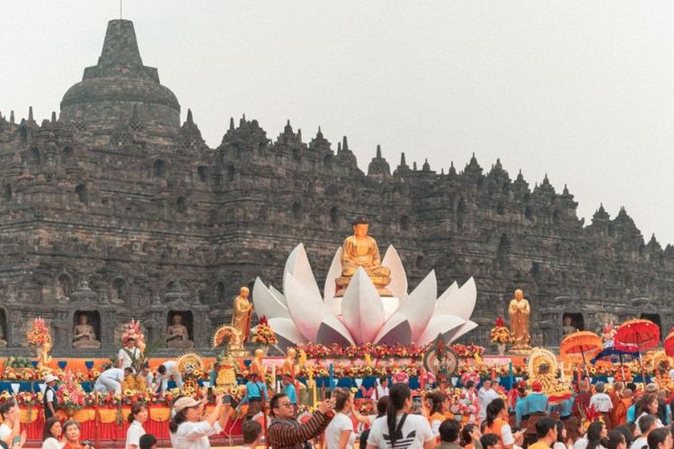 Umat Buddha merayakan Tri Suci Waisak di Candi Borobudur.