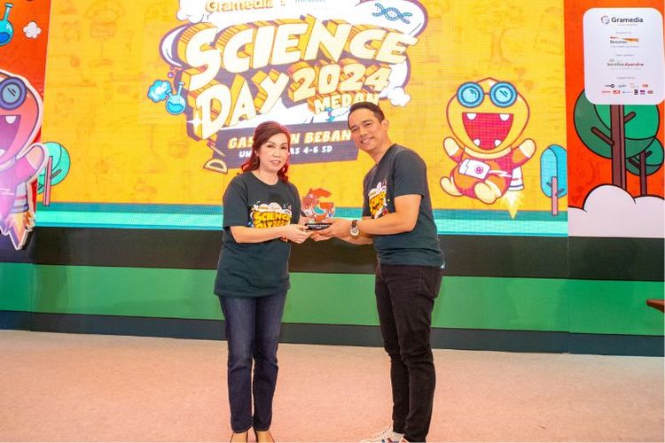 Penyerahan cinderamata oleh Regional Corporate Officer Bank Danamon Riana Suagiat kepada Marketing General Manager Gramedia, Made Ruswidhi.