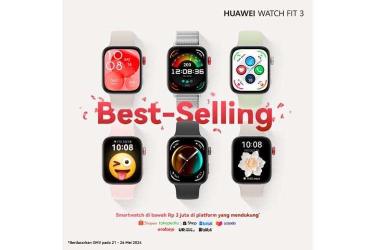 HUAWEI WATCH FIT 3 berhasil meraih predikat smartwatch di bawah Rp 3 juta dengan penjualan terbaik.
