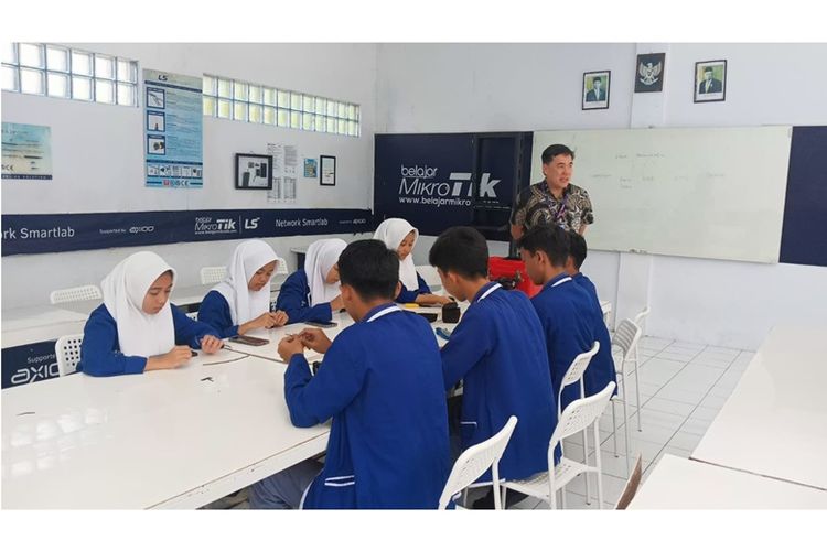 Vice President Business Development and Strategic Partnership PT Tera Data Indonusa Timmy Theopelus bersama siswa SMK Pertiwi Kuningan.