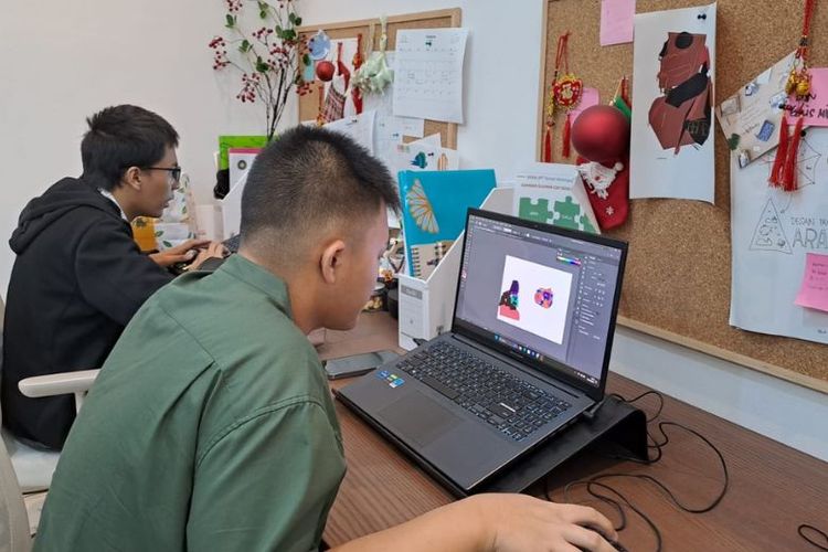 Pada 2022, Yayasan Filoksenia diluncurkan. Tak sekadar menjadi ruang karya, yayasan ini sekaligus menjadi wadah bagi empat teman neurodiverse bekerja sebagai desainer grafis. Sistem kerja seperti halnya perkantoran umum diterapkan, tetapi tetap disesuaikan dengan kondisi para neurodiverse.(Dok. KOMPAS.com/Yakob Arfin)