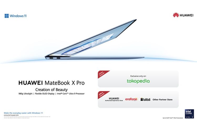 Pemesanan pre-order HUAWEI MateBook X Pro secara online dapat dilakukan secara eksklusif melalui Huawei Official Store di Tokopedia.