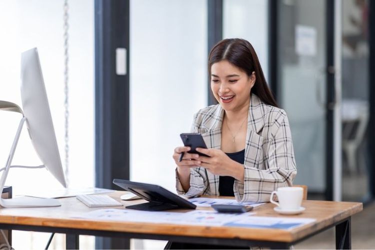 Ilustrasi anak muda yang menggunakan BRIFINE BRI via BRImo.