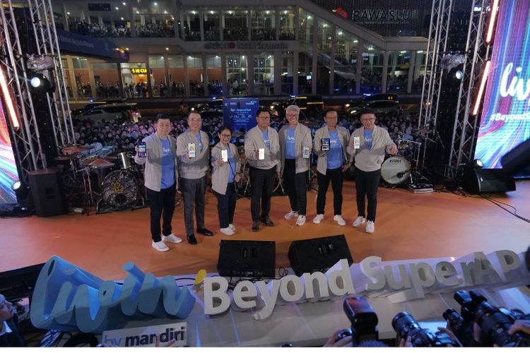Bank Mandiri menghadirkan kampanye #BeyondSuperAPP di Sarinah, Jakarta Pusat, Jumat (28/6/2024).