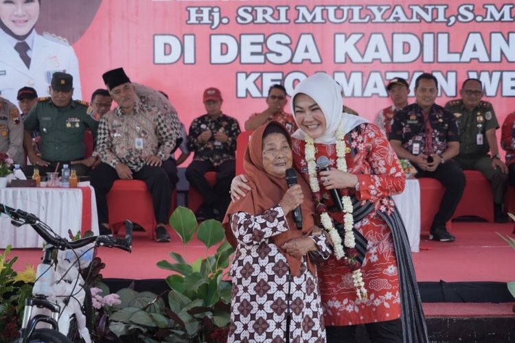 Bupati Klaten Sri Mulyani saat menghadiri kegiatan Sambang Warga di Kantor Desa Kadilanggon, Kecamatan Wedi, Kabupaten Klaten, Jawa Tengah,Selasa (9/7/2024).