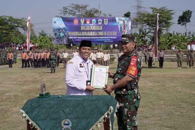 Sekretaris Daerah Kabupaten Klaten Jajang Prihono resmi membuka program TNI Manunggal Membangun Desa (TMMD) Sengkuyung ke-121 Tahun Anggaran 2024 di Lapangan Jetis, Desa Tambong Wetan, Kecamatan Kalikotes, Kabupaten Klaten, Jawa Tengah Rabu (24/7/2024). (dok. Pemkab Klaten)