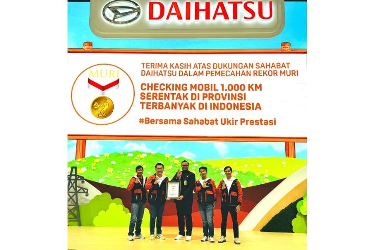 Daihatsu mencetak rekor MURI untuk Perawatan Berkala Pertama Mobil secara Serentak di Provinsi Terbanyak. Adapun penyerahan penghargaan dilakukan secara simbolis di booth Daihatsu di GIIAS 2024, Kamis (18/7/2024).