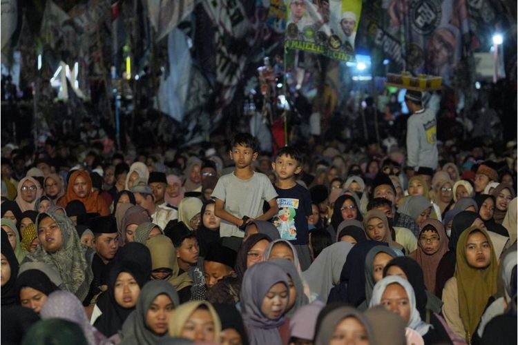 Ribuan warga mengikuti gelaran Klaten Berdzikir dan Bersholawat (KBBS) bersama Habib Zaidan bin Haidar bin Yahya di Alun-alun Kabupaten Klaten, Jawa Tengah, Jumat (2/8/2024)