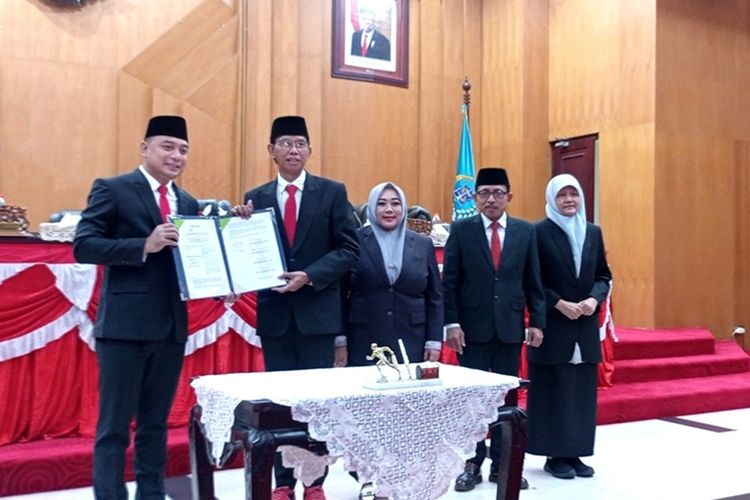 Pimpinan DPRD Kota Surabaya bersama Wali Kota Surabaya Eri Cahyadi menetapkan APBD 2025 Kota Surabaya senilai Rp 12,3 triliun dalam agenda Rapat Paripurna di Kantor DPRD Kota Surabaya, Jawa Timur, Kamis (15/8/2024).(Dok. DPRD Surabaya)