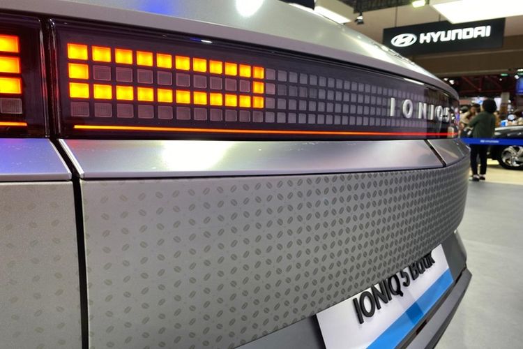Pola batik Kawung khas Yogyakarta berwarna abu-abu menghiasi bodi IONIQ 5 Batik.