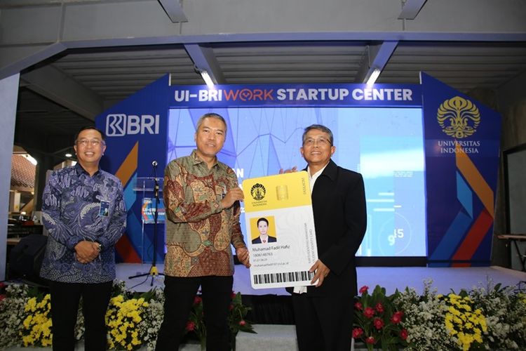 Direktur Retail Funding and Distribution BRI Andrijanto dan Wakil Rektor Bidang SDM dan Aset UI Dedi Priadi dalam peresmian UI-BRIWORK Startup Center yang terletak di Gedung Annex Area Balairung UI Kampus Depok, Rabu (21/8/2024).