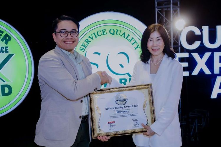 Pihak BRI menerima penghargaan di ajang Service Quality Awards 2024 di Sky Ayana Jimbaran, Bali Rabu (7/8/2024).(Dok BRI)