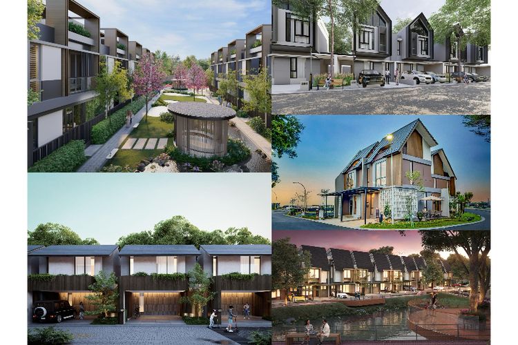 South Tresor at Metland Cyber Puri by PT Metropolitan Karyadeka Development (kiri atas), Vilas Palagan by Damai Putra Group (kanan atas), ARIA Bogor by Greenwoods Group (kanan tengah), Viola at Summarecon Crown Gading by Summarecon Group (kiri bawah), Lake Home Serpong by PT Mekar Agung Sejahtera (kanan bawah)(Dok. PropertyGuru)