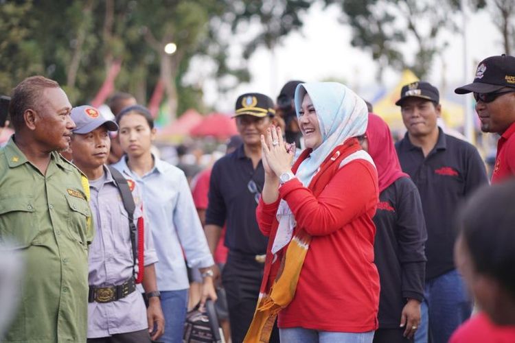 Bupati Klaten Sri Mulyani turut menyaksikan kirab gunungan Festival Candi Kembar.