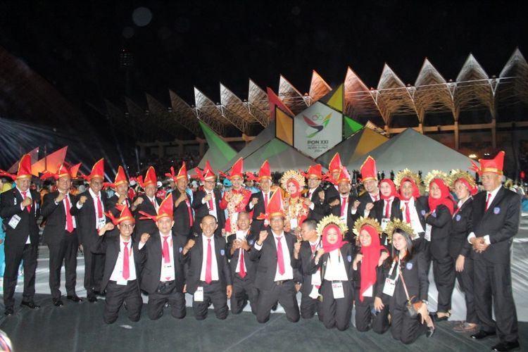 Pj Gubernur Sulsel Prof Zudan bersama dengan kontingen Sulsel di upacara pembukaan Pekan Olahraga Nasional (PON) XXI Aceh-Sumatera Utara di Stadion Harapan Bangsa, Banda Aceh, Aceh, Senin (9/9/2024).