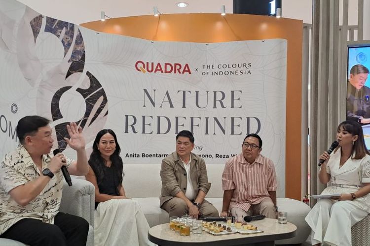 Chief Operating Officer (COO) Quadra, Willie Low, mengatakan, pameran The Colours of Indonesia (TOIC) 2024 merupakan kesempatan bagi Quadra untuk memberikan kontribusi positif pada dunia dan industri interior di Indonesia. Willie bersama tiga desainer interior kondang Anita Boentarman, Ary Juwono, dan Reza Wahyudi. (Dok. KOMPAS.com/ Yakob Arfin T Sasongko)