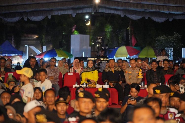 Bupati Klaten Sri Mulyani saat menghadiri konser Gempur Rokok Ilegal.