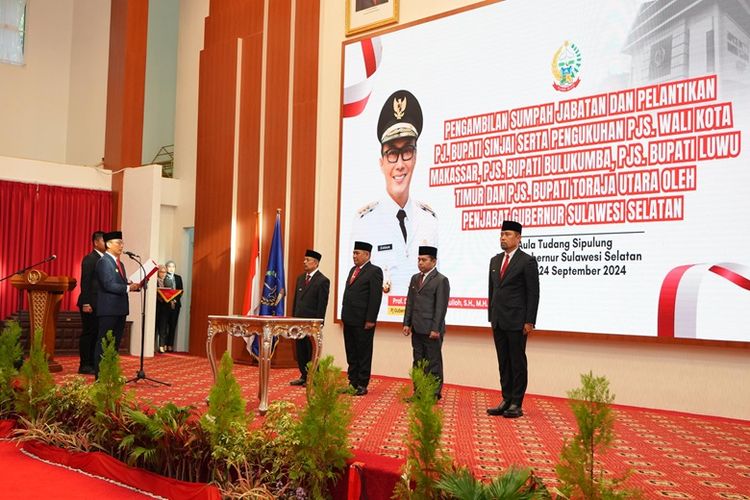 Pelantikan empat Pjs kepala daerah oleh Pj Gubernur Sulsel Prof Zudan.(Dok. Pemprov Sulsel)