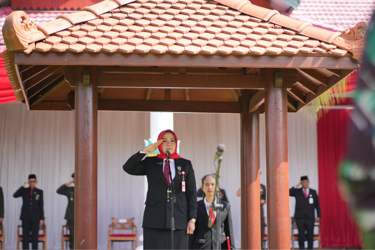 Bupati Klaten Sri Mulyani menjadi inspektur pada upacara peringatan Hari Kesaktian Pancasila di Pendapa Ageng, Kabupaten Klaten, Selasa (1/10/2024). (Dok. Pemkab Klaten)