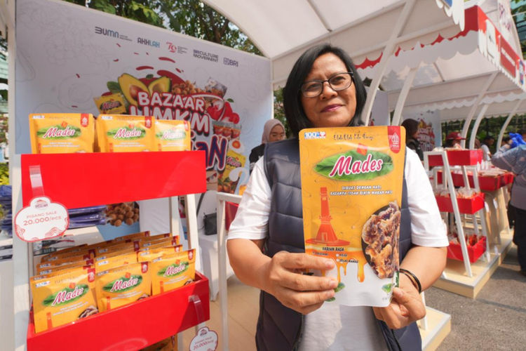 Ketua Kelompok Pisang Sale Mades Ni Made Suryani di pameran Bazaar UMKM BRILian.