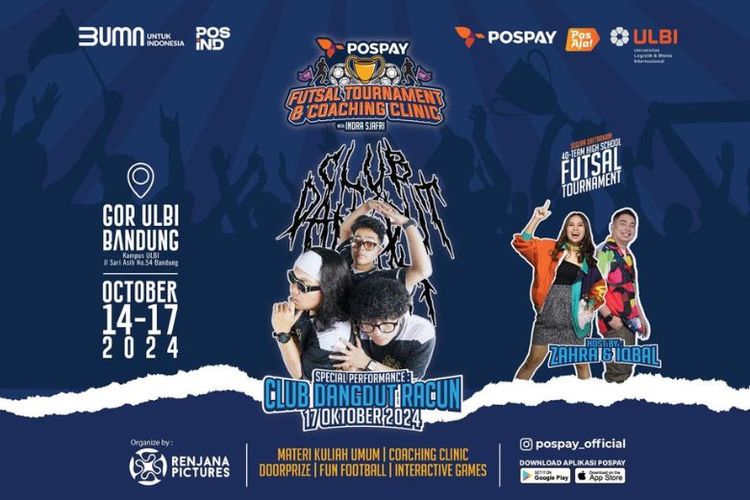 Turnamen Futsal Pospay Cup dan Coaching Clinic juga menghadirkan acara menarik lain, seperti penampilan spesial Club Dangdut Racun pada 17 Oktober 2024.