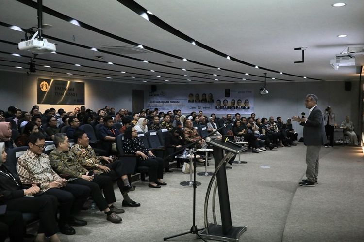 Direktur Utama (Dirut) PT Bank Rakyat Indonesia (Persero) Tbk atau (BRI) Sunarso dalam Diskusi Panel menyambut Dies Natalis ke-36 Magister Manajemen (MM) Fakultas Ekonomi dan Bisnis (FEB) Universitas Indonesia (UI) dengan tema "Kesetimbangan Fungsi Ekonomi, Sosial, dan Lingkungan: Studi Kasus BUMN".(DOK. Humas BRI)