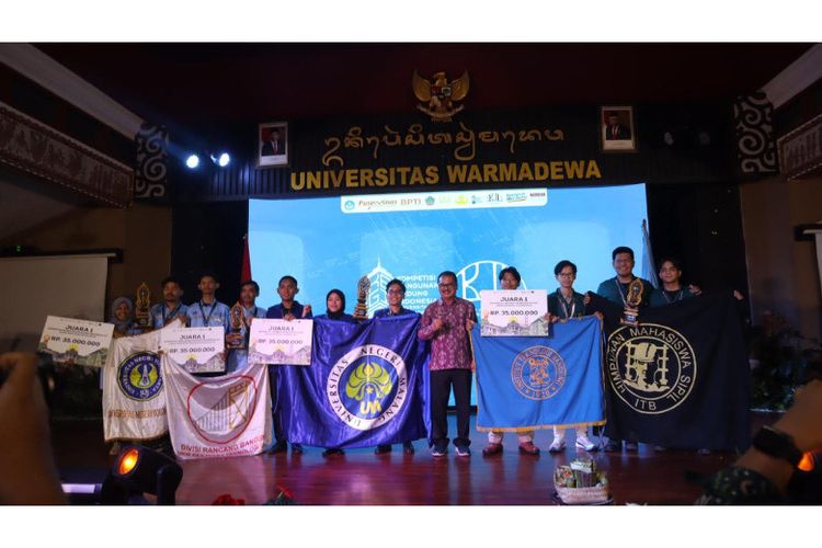 Tim Raidz Universitas Negeri Malang (UM) meraih juara pertama pada Kompetisi Jembatan Indonesia (KJI) 2024 yang digelar di Universitas Waramadewa, Bali, 7?11 Oktober 2024. Dengan inovasi teknologi IoT, mereka berhasil memenangkan kategori "Jembatan dengan Kesesuaian antara Implementasi dan Rancangan Awal Terbaik."(Dok. UM)