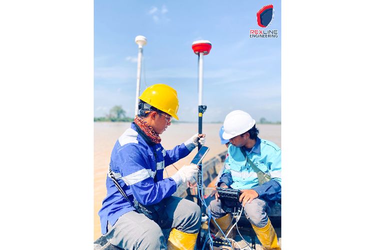 Tim survei geoteknik Rexline Engineering sedang melakukan pengukuran di lapangan untuk proyek pembangunan pelabuhan di Batanghari, Jambi. Data yang dikumpulkan akan digunakan untuk memastikan desain pelabuhan yang kokoh dan efisien (Dok. Rexline Engineering)