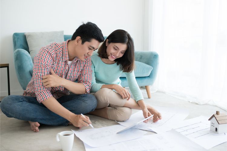 Ilustrasi merencanakan rumah impian keluarga bersama pasangan