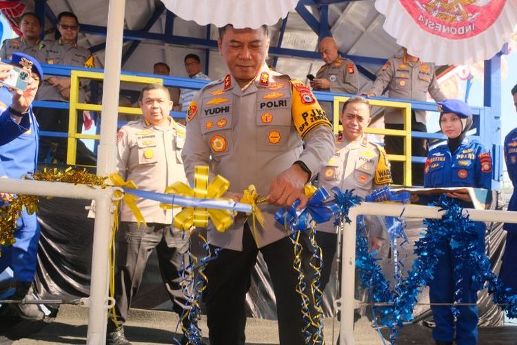 Peresmian kapal patroli C1-3012 Sikatan oleh Kapolda Sulsel di Dermaga Mako Ditpolairud Sulsel, Selasa (22/10/2024).