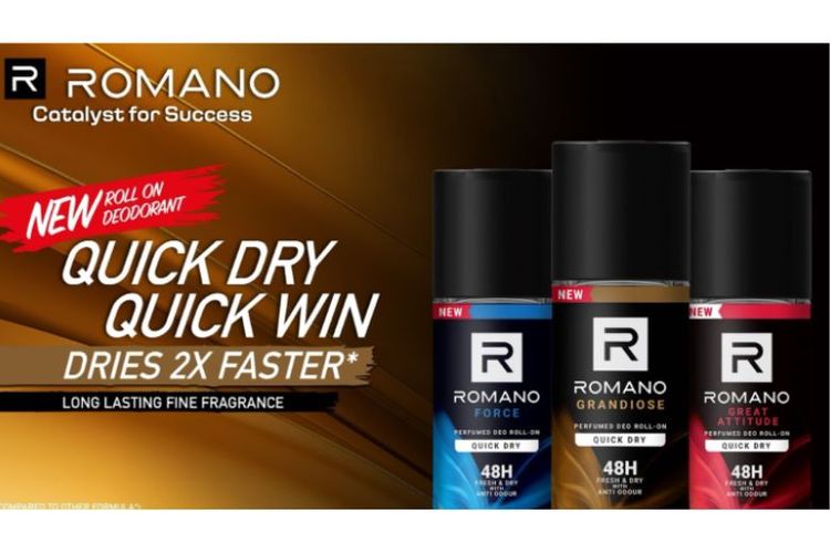 Romano meluncurkan deodoran Romano New Roll-on Deodorant untuk pria yang aktif.