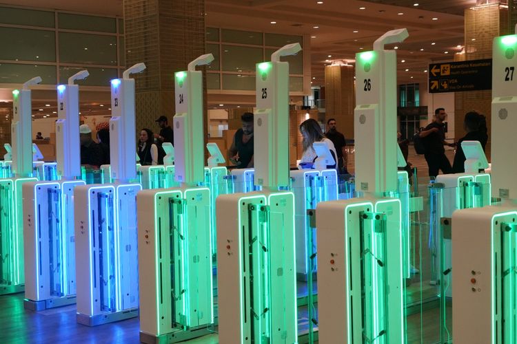 Ilustrasi WNA menggunakan autogate imigrasi di bandara.